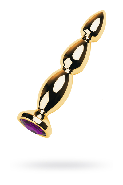 Анальная втулка со стразом, TOYFA Metal, золотистая, с кристаллом цвета аметист